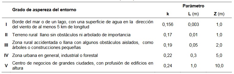 - grados: grados de aspereza del entorno según la tabla D.2.